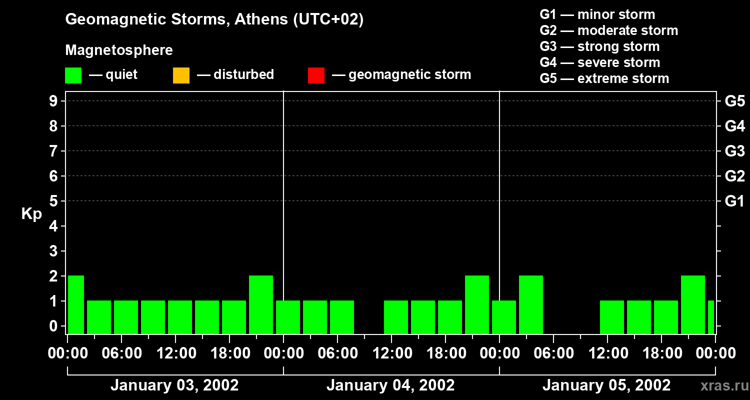 Geomagnetic storms in Athens on Jan 05, 2002