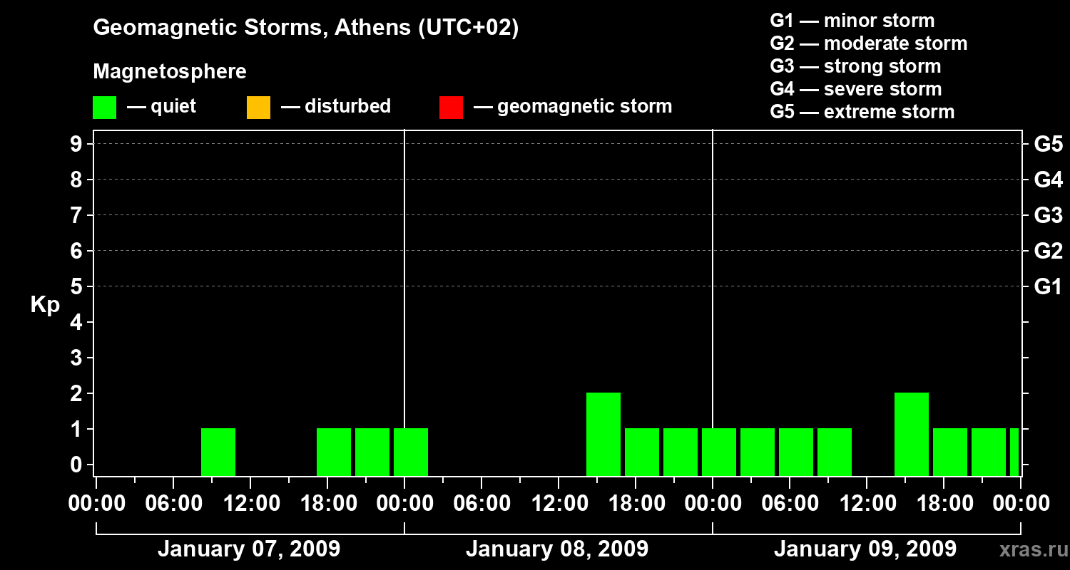 Geomagnetic storms in Athens on Jan 09, 2009