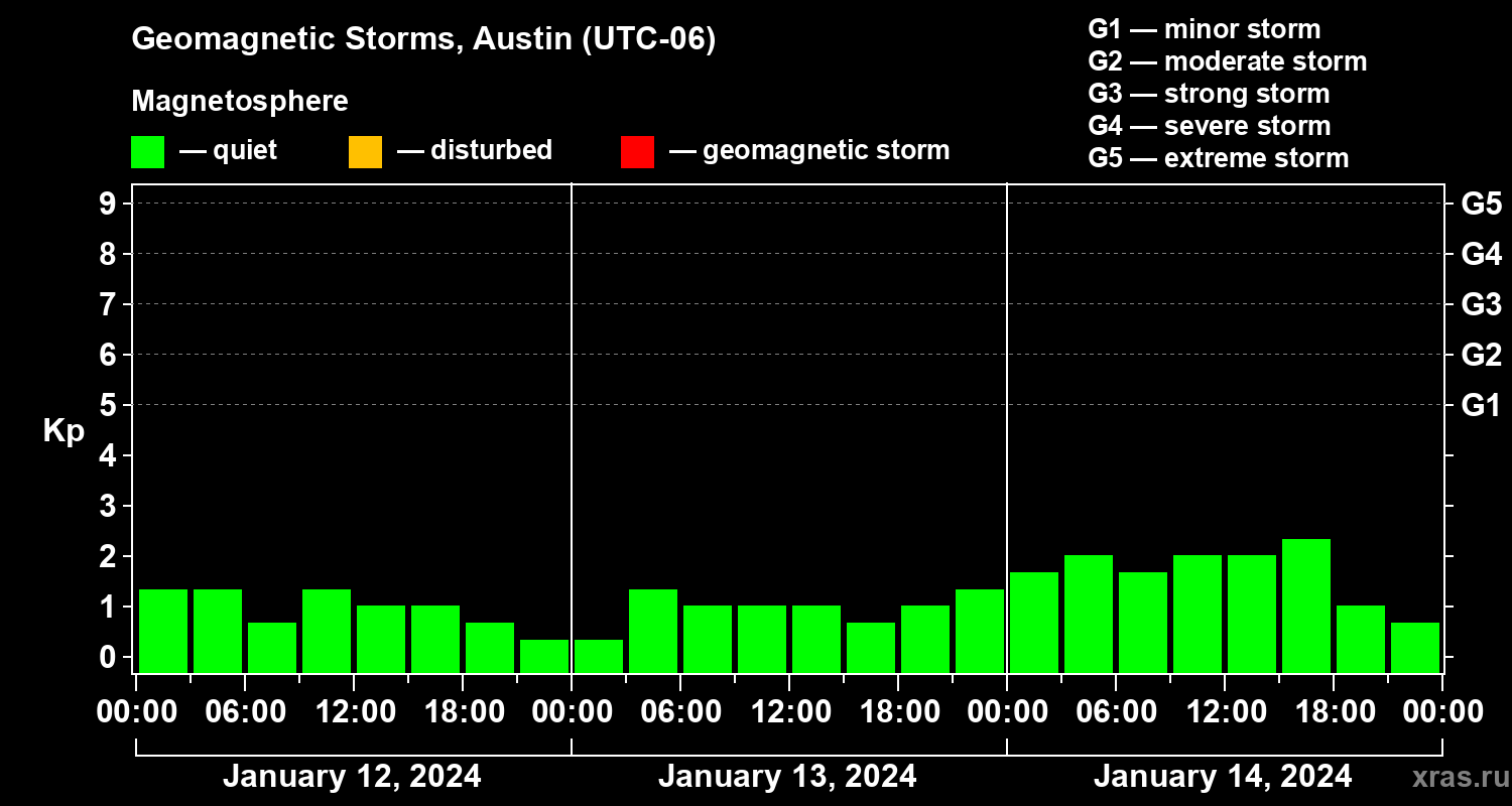 Changes in the geomagnetic index Kp from January 12 to 14, 2024 for mid latitudes