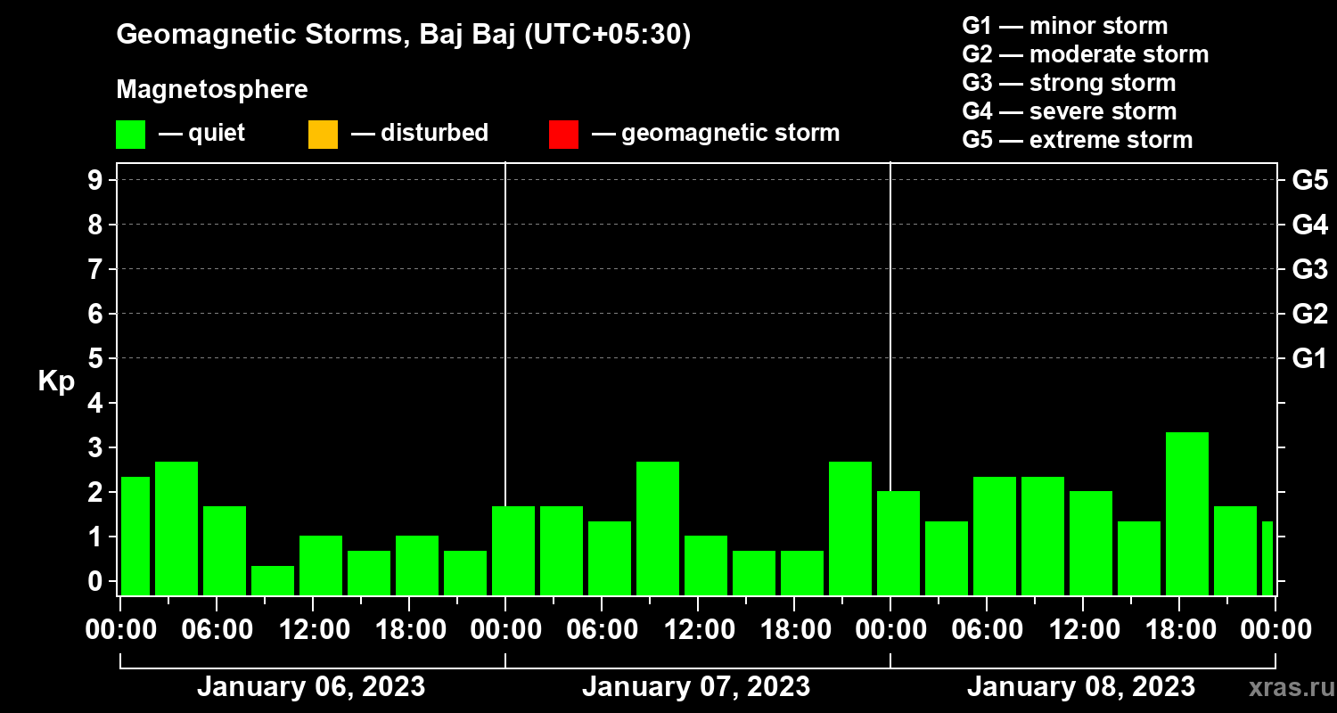 Geomagnetic storms in Baj Baj on Jan 08, 2023