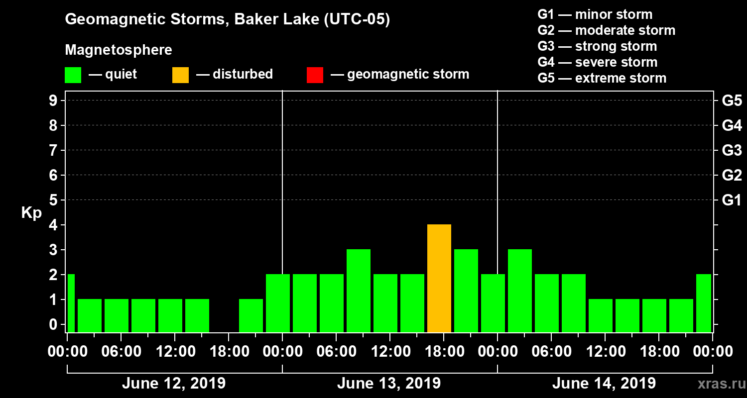 Geomagnetic storms in Baker Lake on Jun 14, 2019