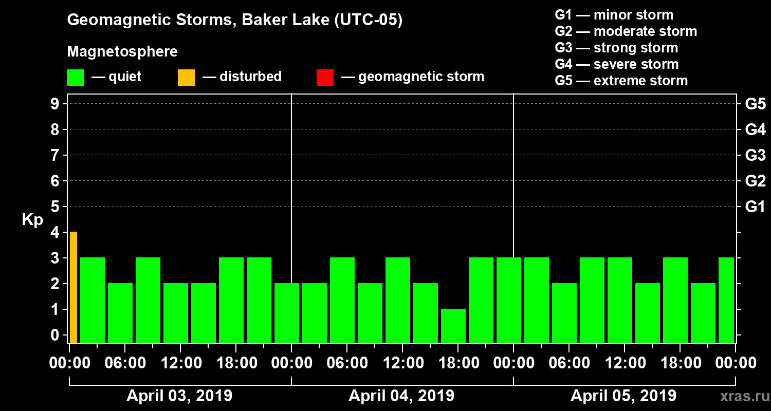 Geomagnetic storms in Baker Lake on Apr 05, 2019