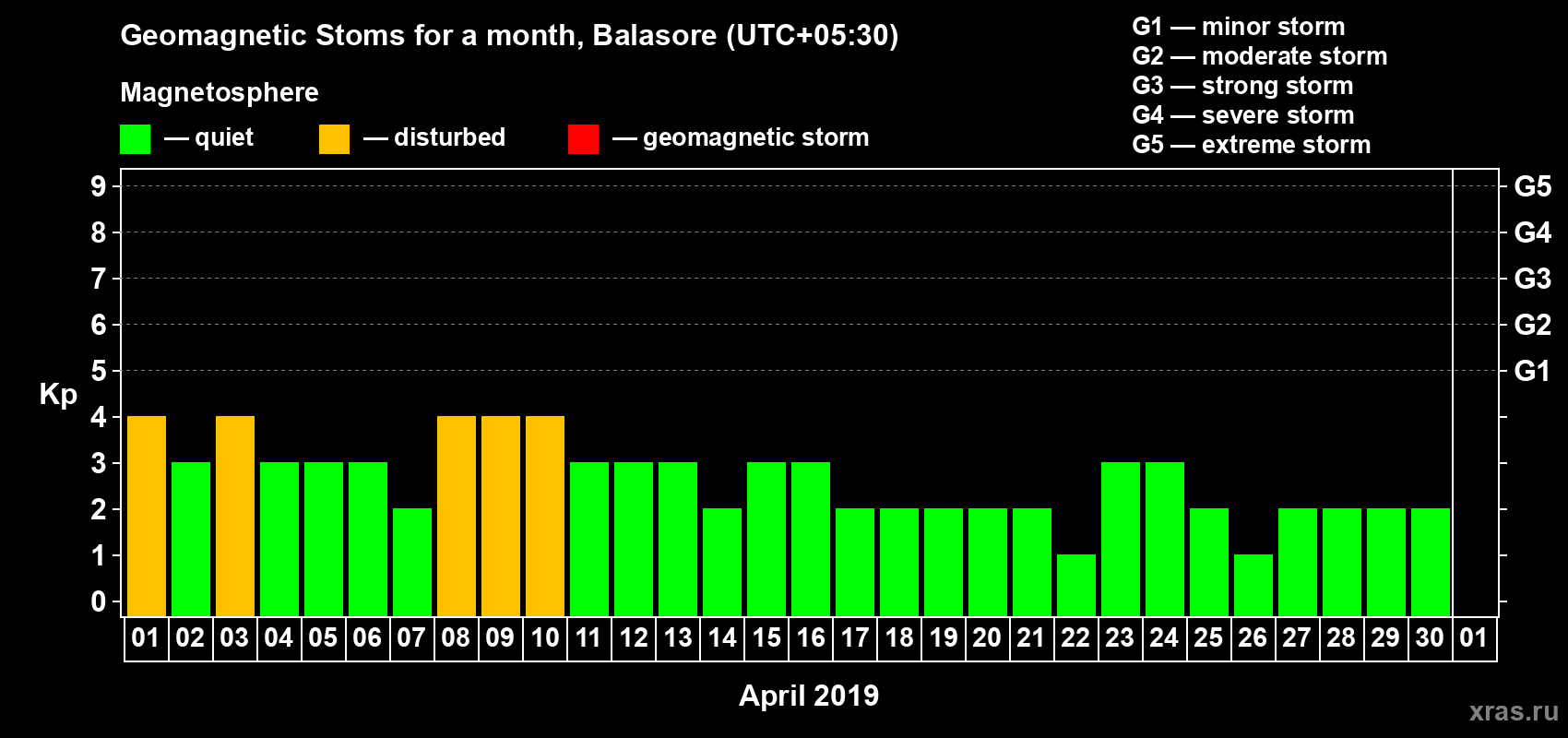 List of magnetic storms in April 2019