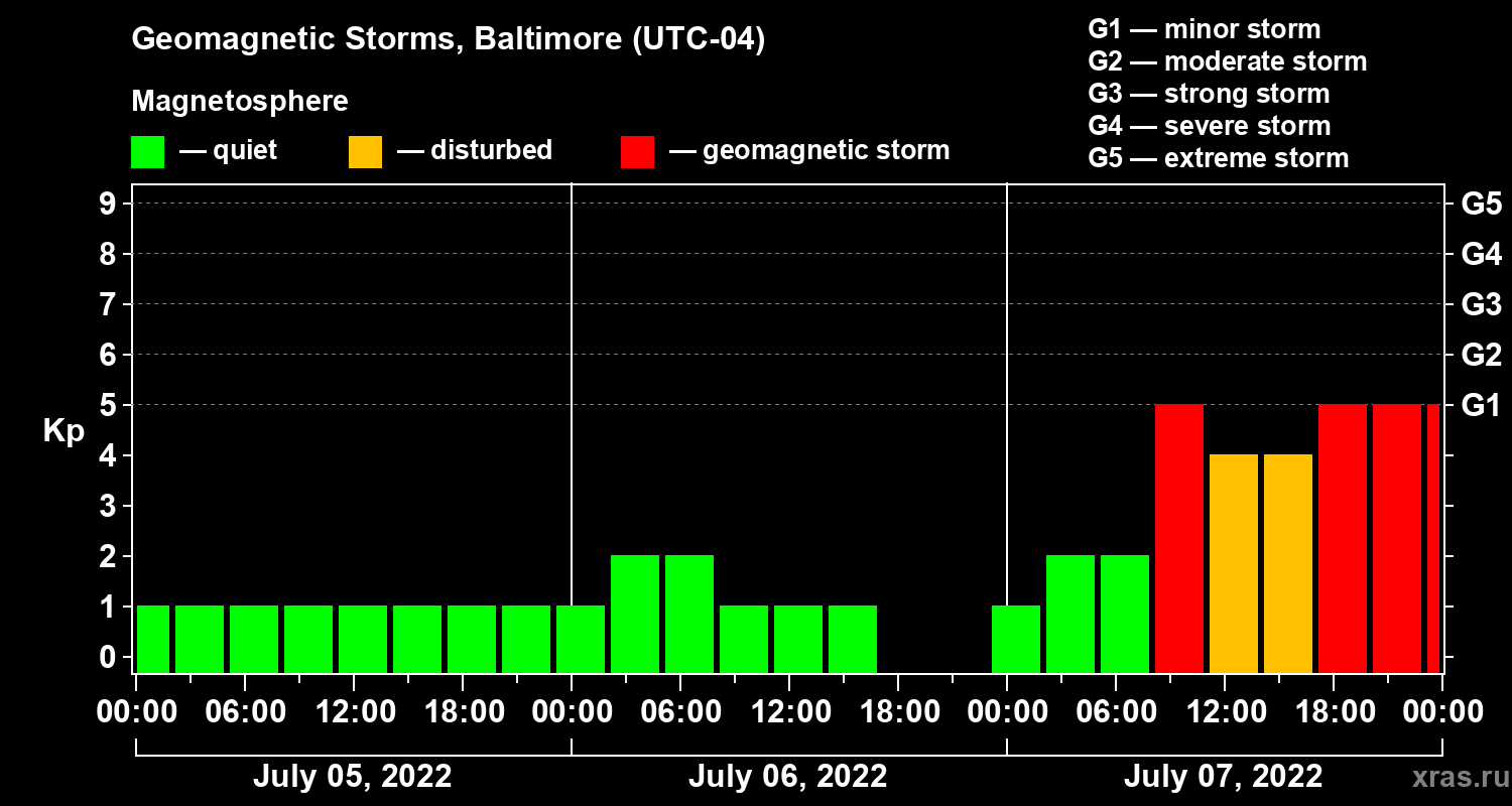 Geomagnetic storms in Baltimore — Jul 07, 2022