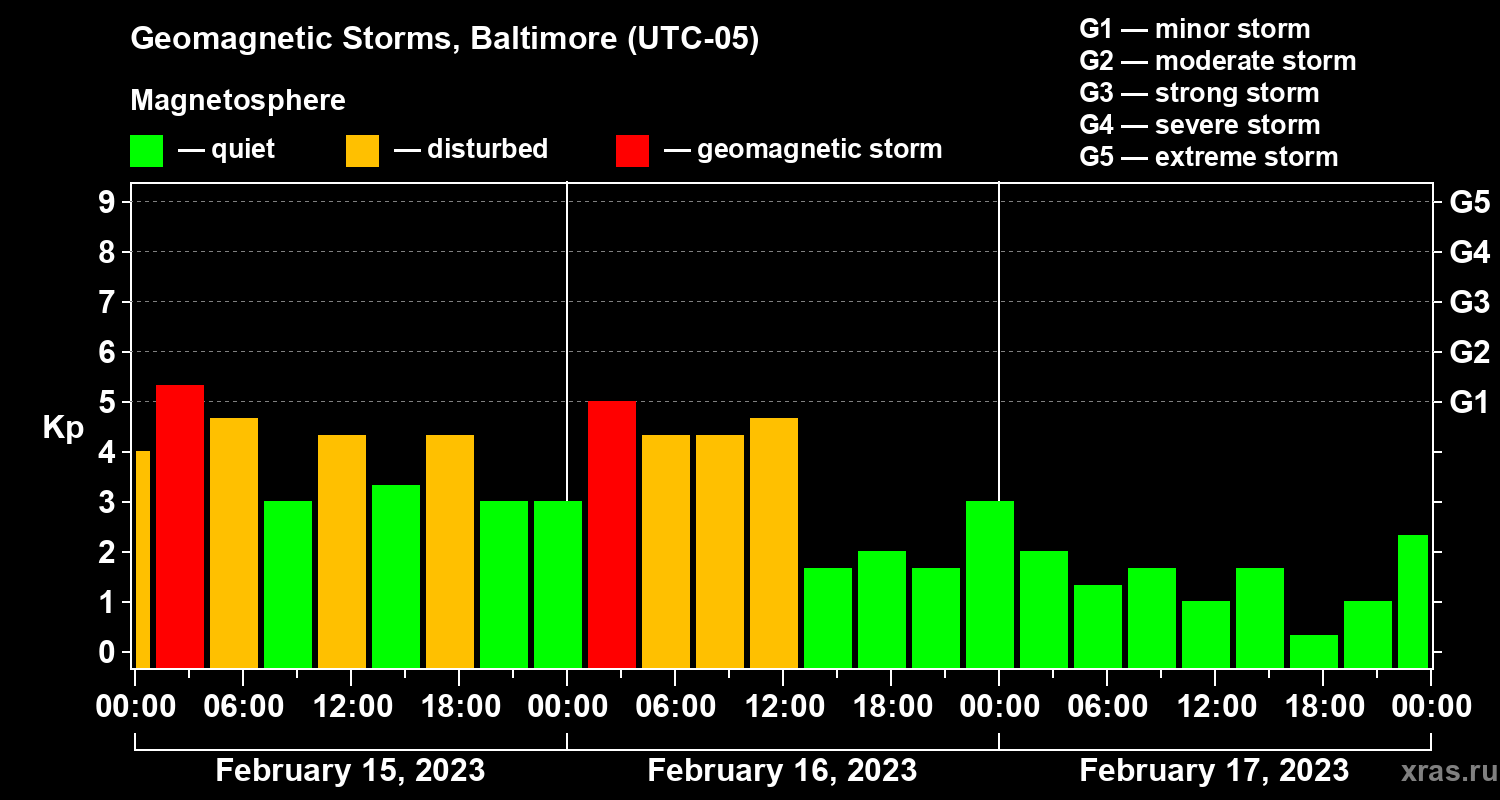 Geomagnetic storms in Baltimore — Feb 17, 2023