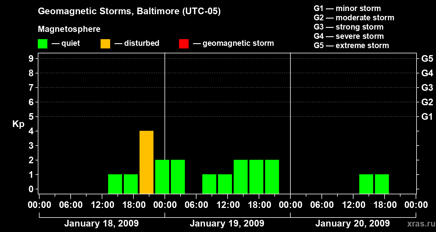 Geomagnetic storms in Baltimore on Jan 20, 2009