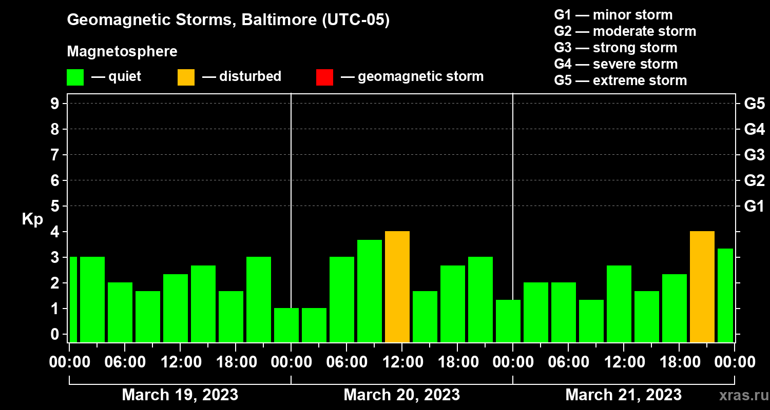 Geomagnetic storms in Baltimore — Mar 21, 2023