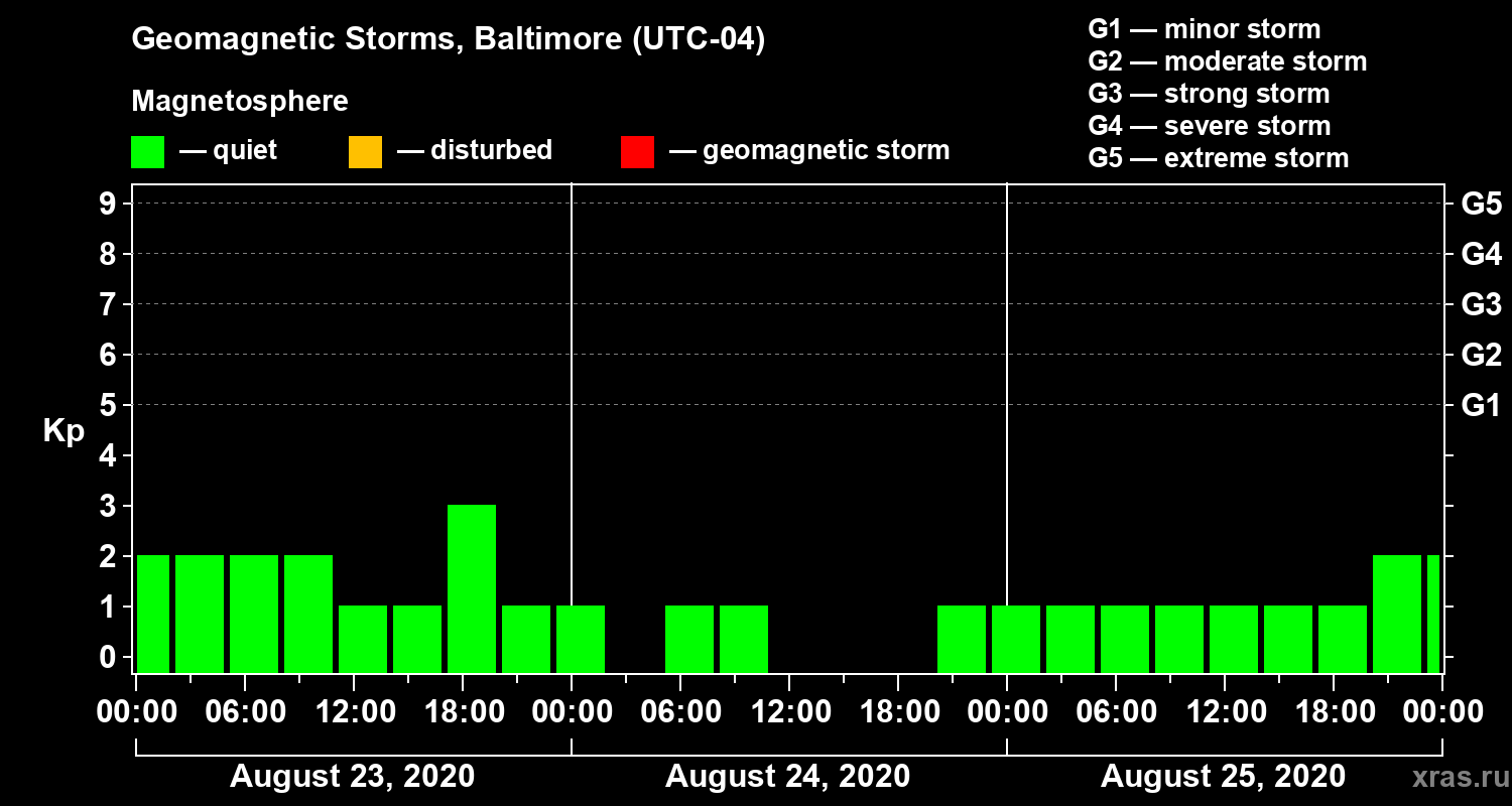 Geomagnetic storms in Baltimore — Aug 25, 2020