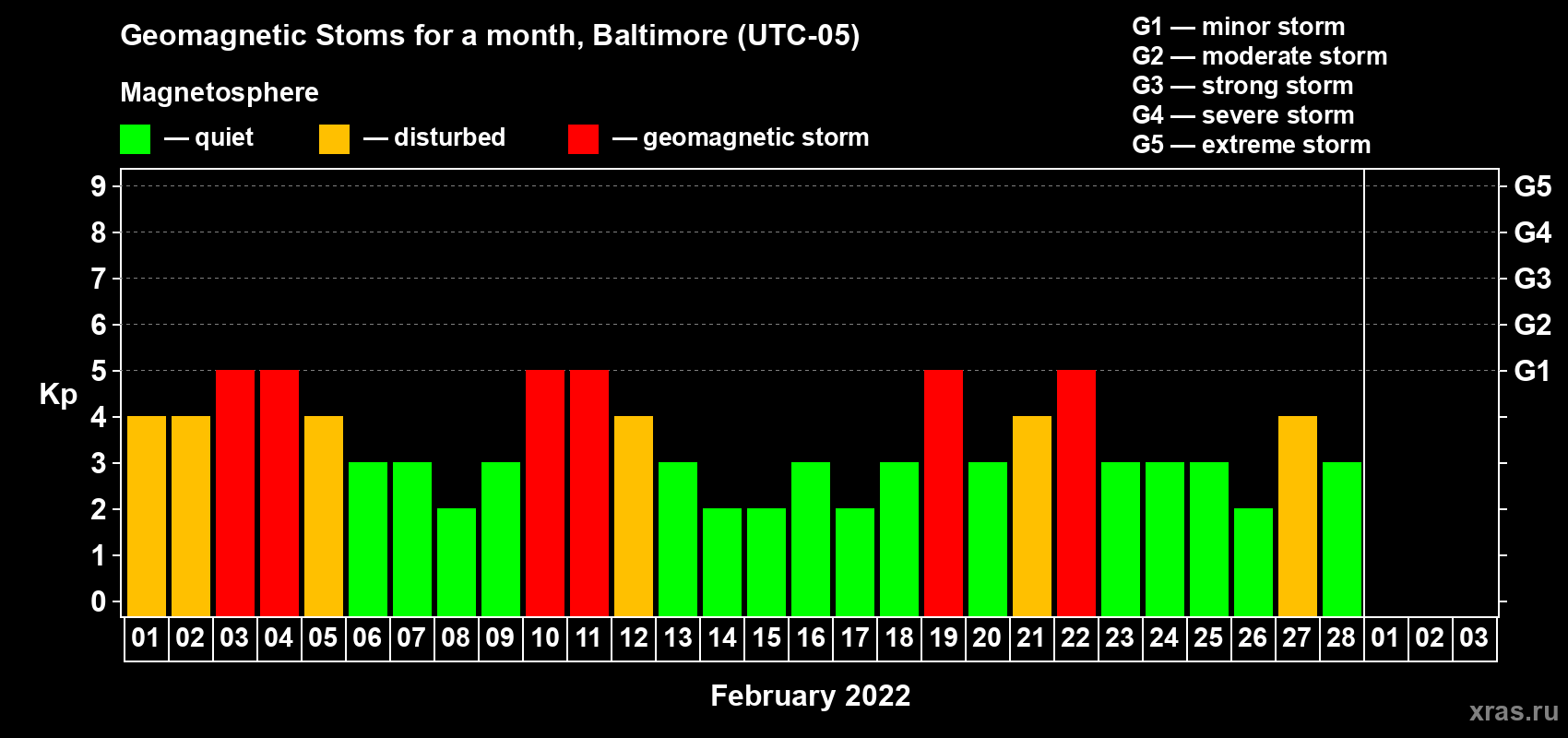 Geomagnetic storms in Baltimore on Feb 28, 2022