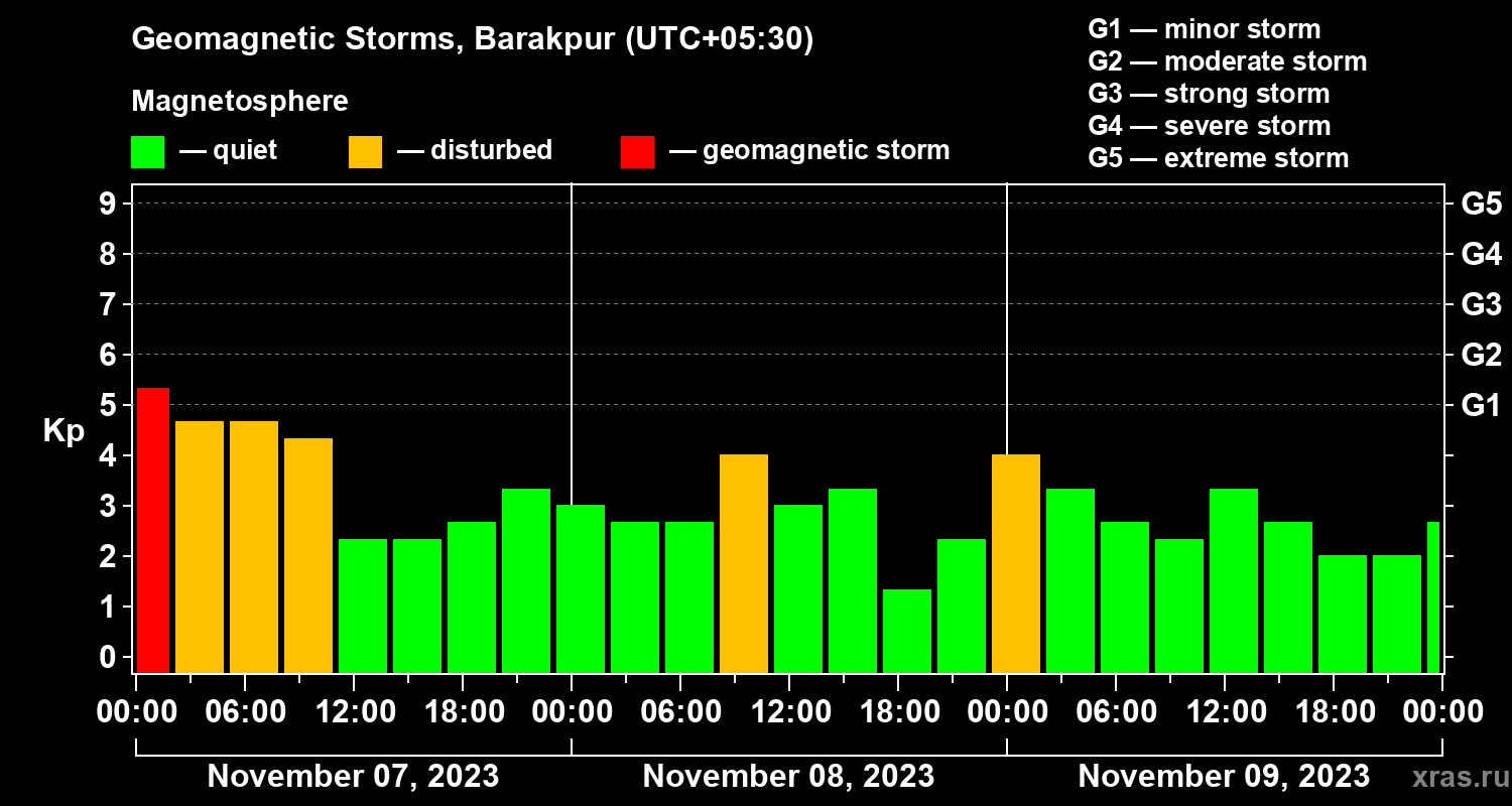 Geomagnetic storms in Barakpur — Nov 09, 2023