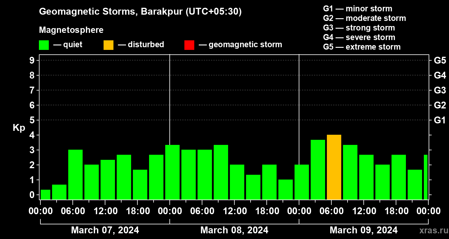 Geomagnetic storms in Barakpur — Mar 09, 2024
