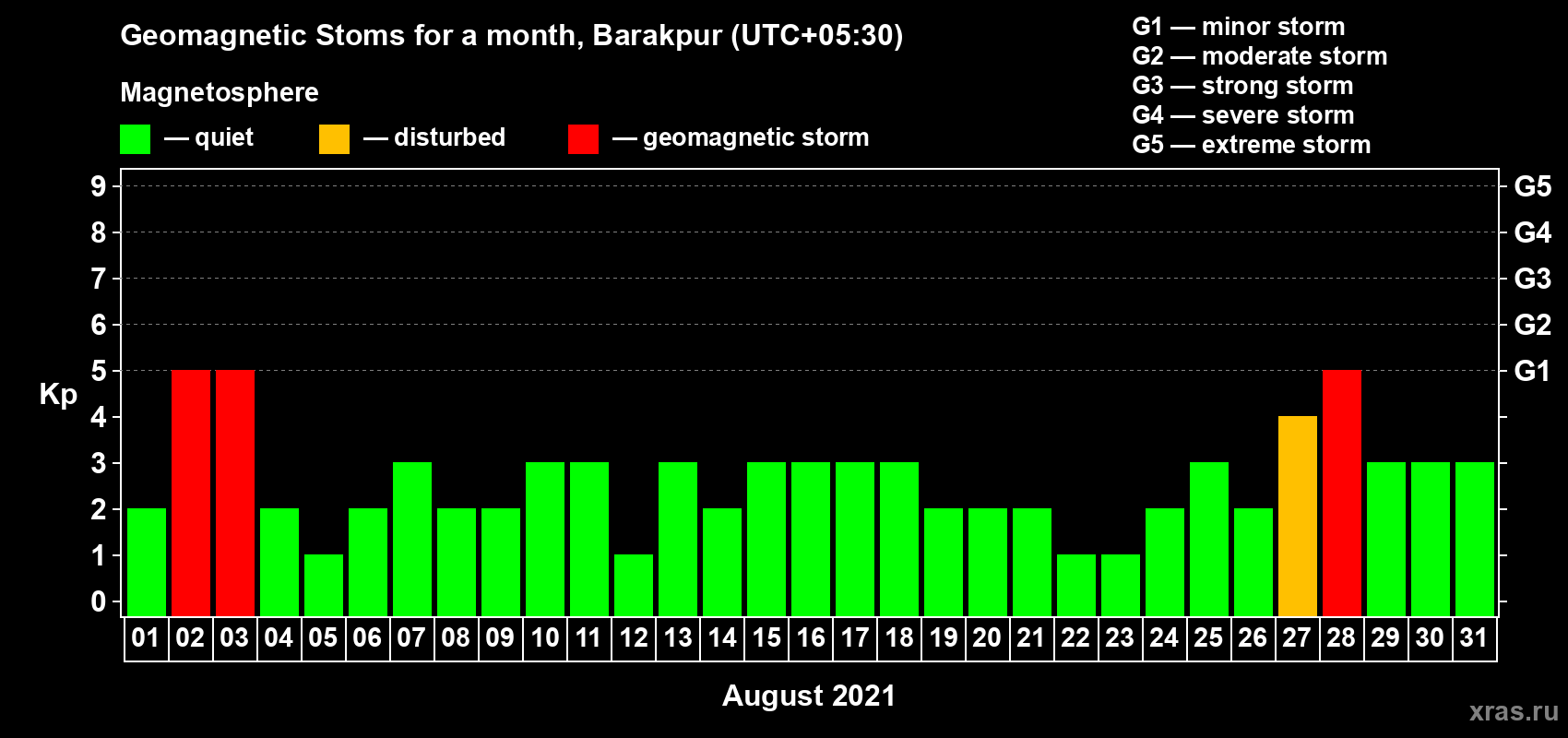 List of magnetic storms in August 2021