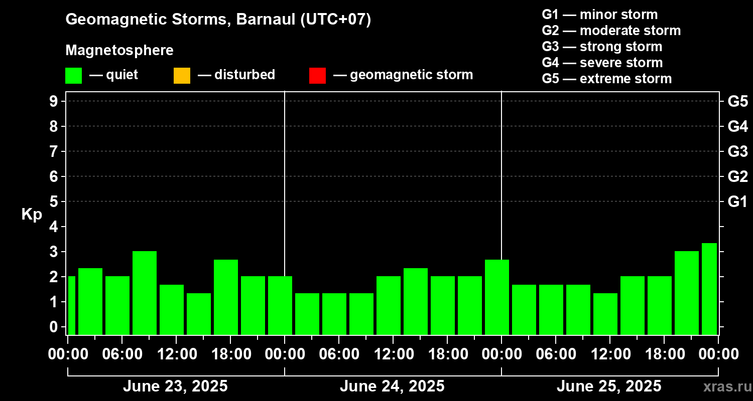 Geomagnetic storms in Barnaul — Jun 25, 2025