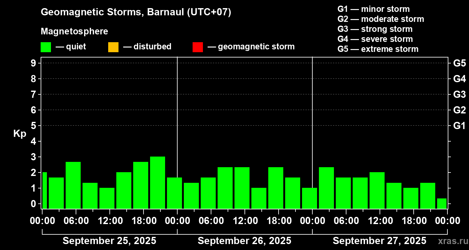 Geomagnetic storms in Barnaul — Sep 27, 2025