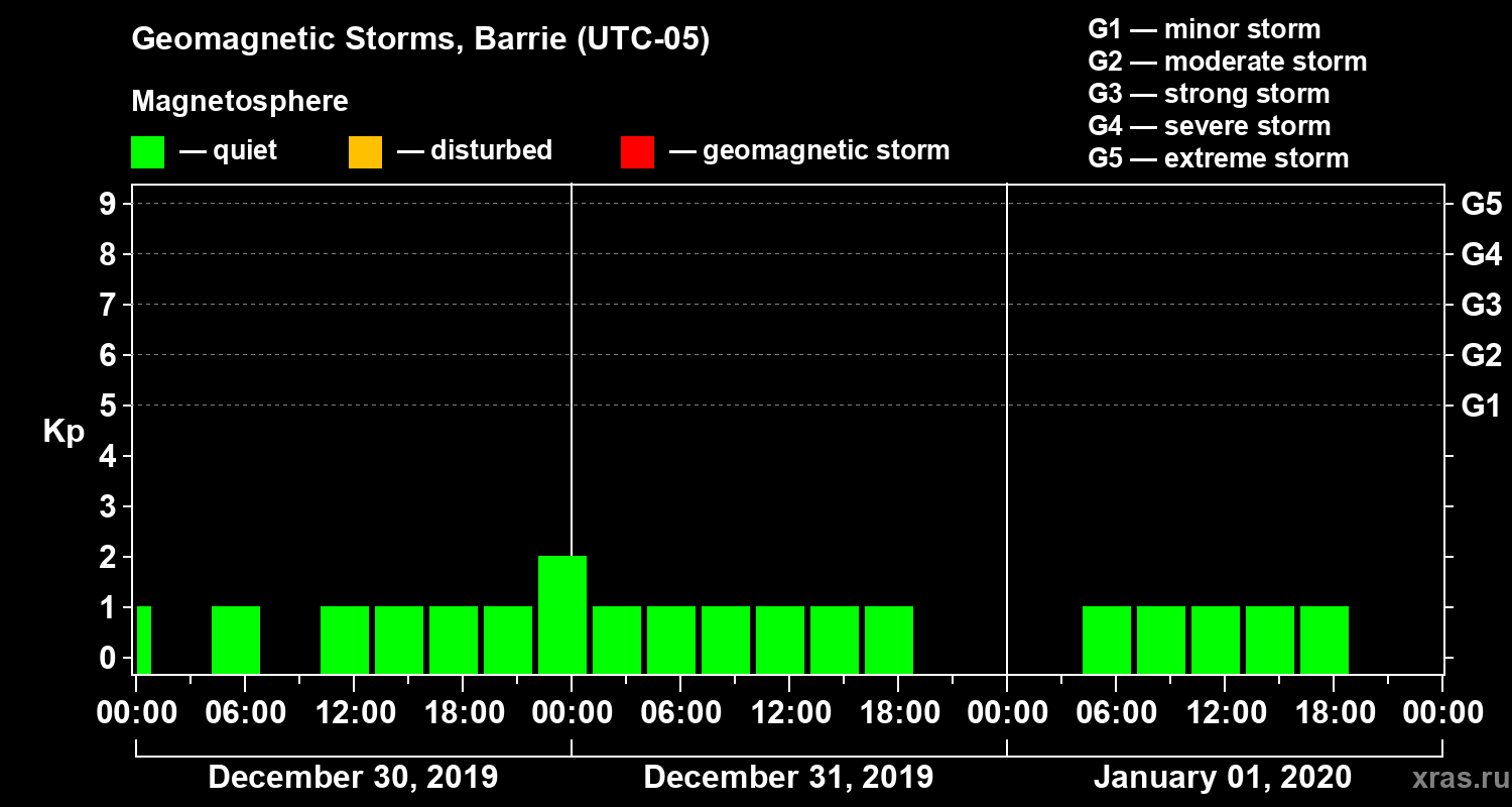 Geomagnetic storms in Barrie on Jan 01, 2020