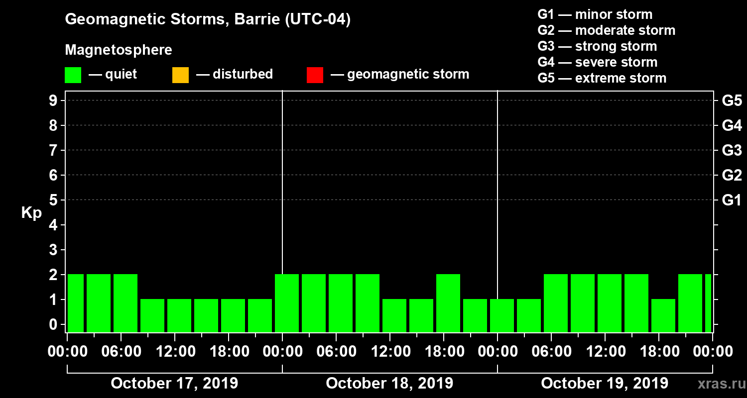 Geomagnetic storms in Barrie on Oct 19, 2019