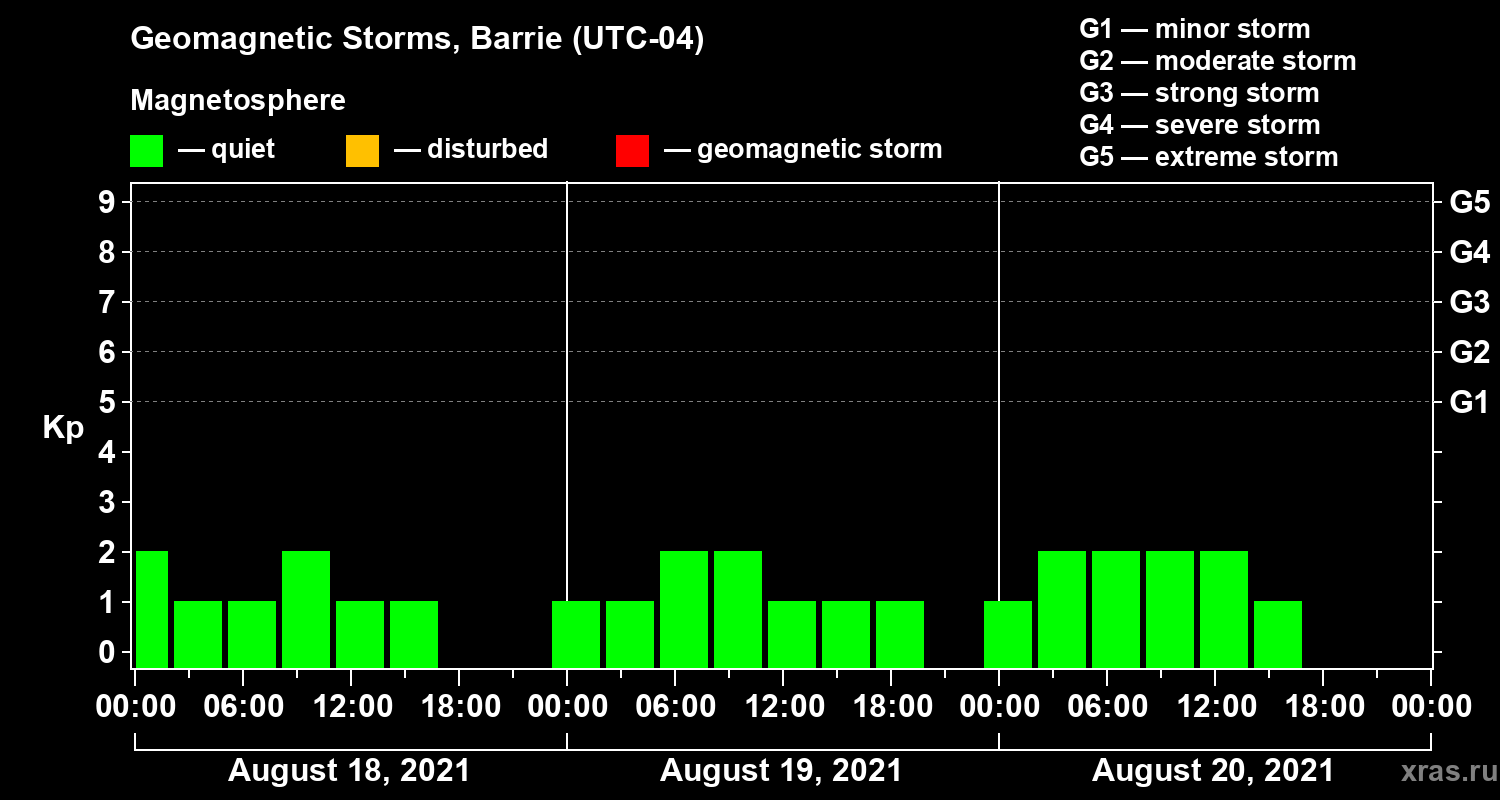 Geomagnetic storms in Barrie on Aug 20, 2021