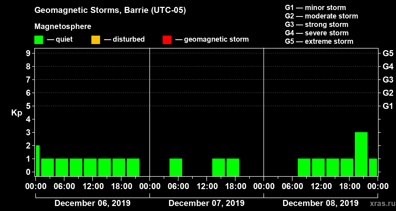 Geomagnetic storms in Barrie on Dec 08, 2019