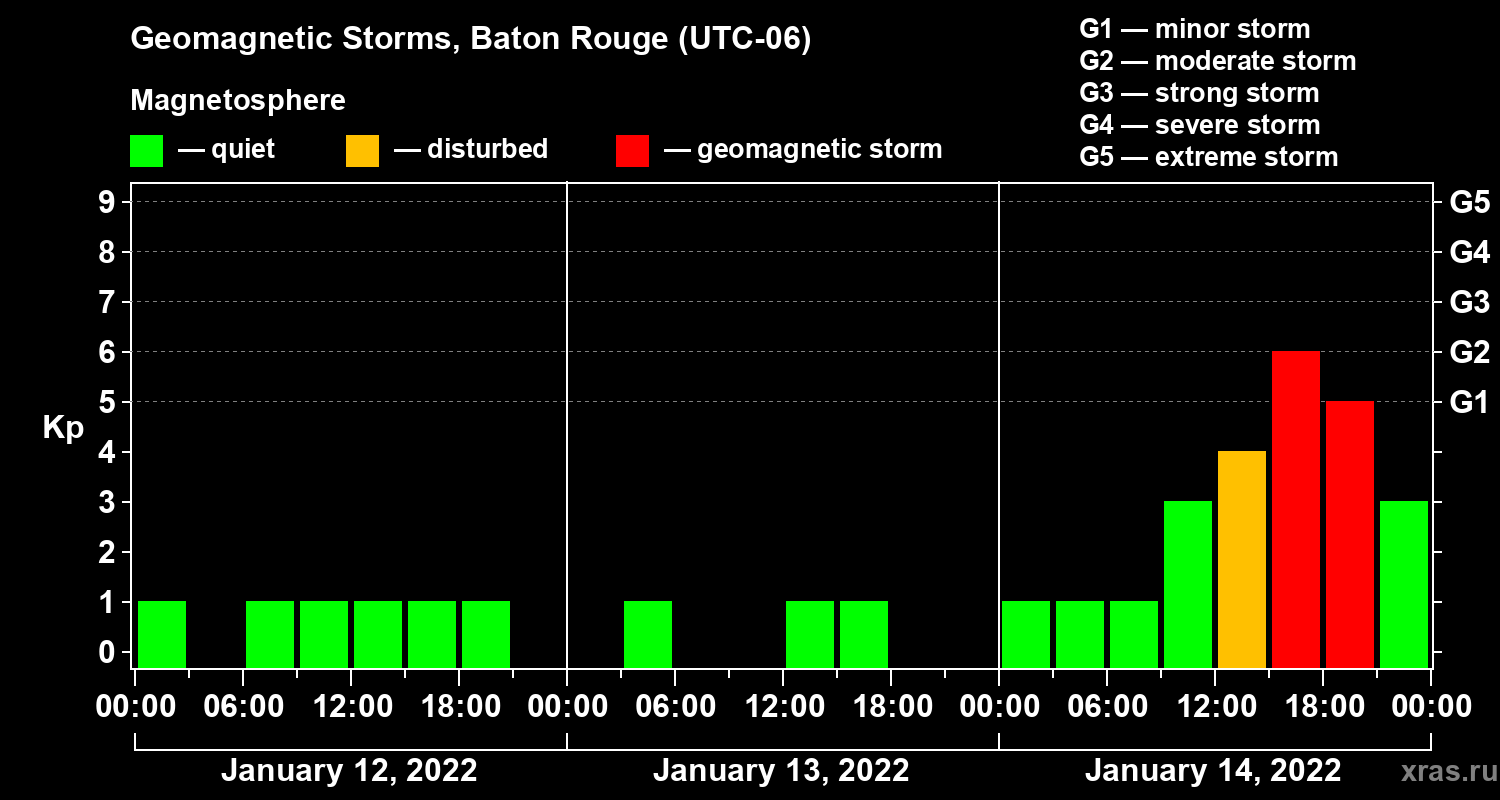 Geomagnetic storms in Baton Rouge — Jan 14, 2022