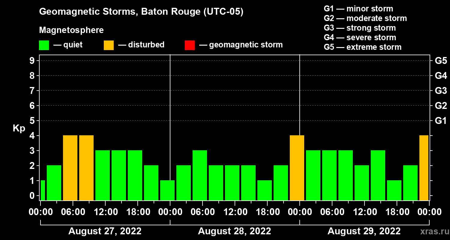 Geomagnetic storms in Baton Rouge — Aug 29, 2022