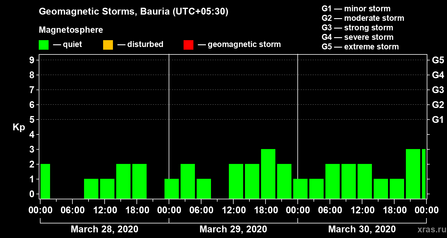 Geomagnetic storms in Bauria — Mar 30, 2020