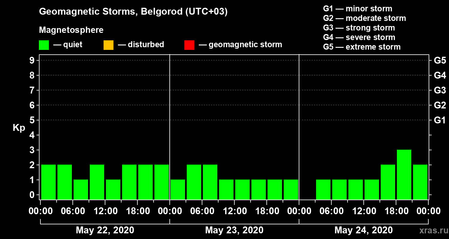 Changes in the geomagnetic index Kp from May 22 to 24, 2020 for mid latitudes