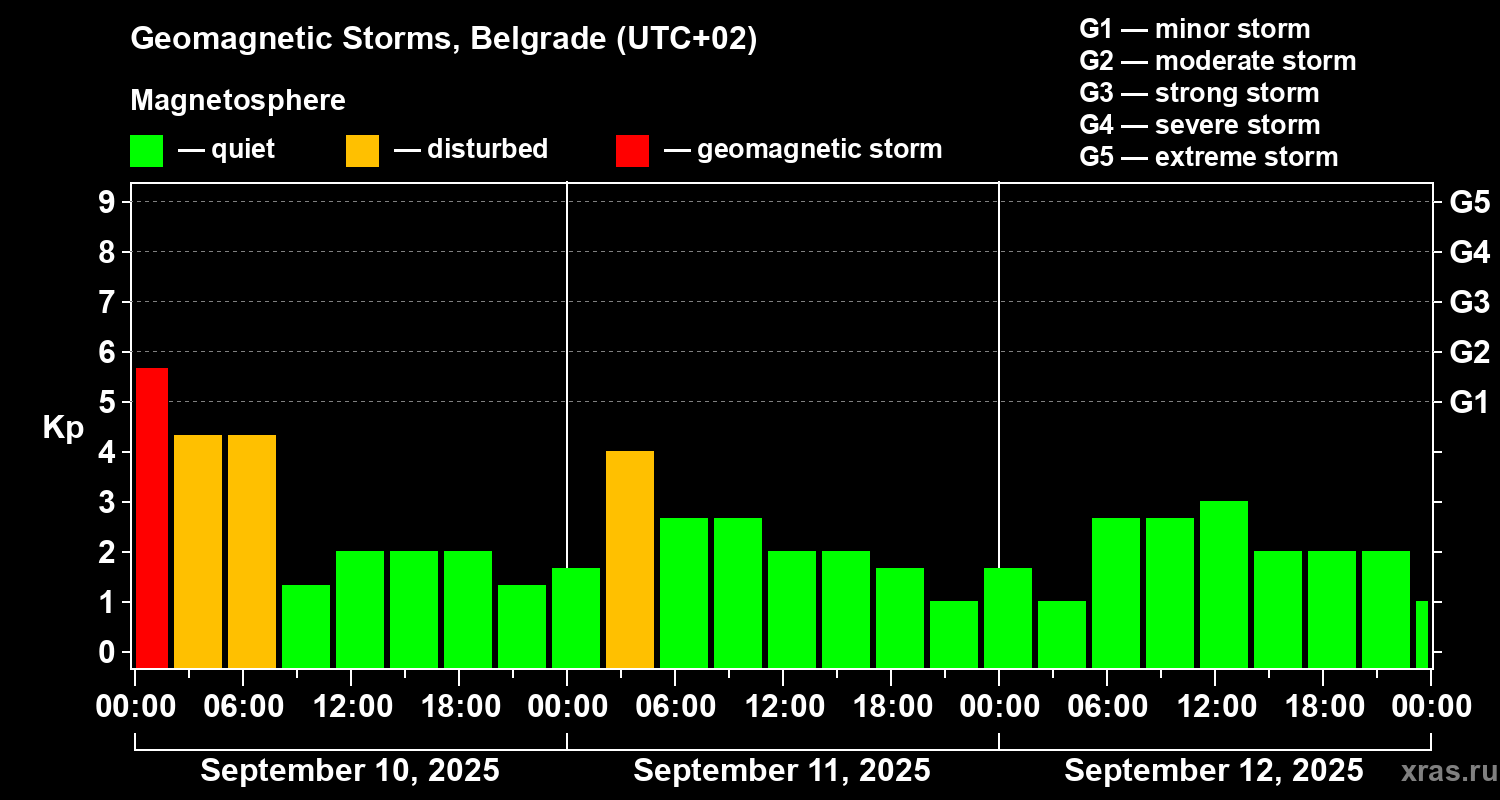 Geomagnetic storms in Belgrade — Sep 12, 2025
