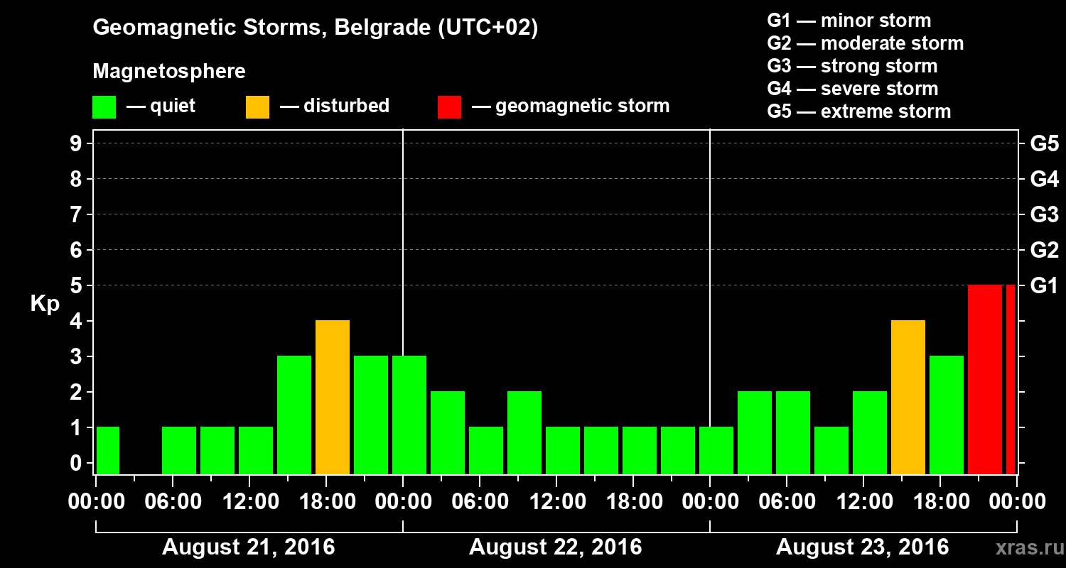 Geomagnetic storms in Belgrade — Aug 23, 2016