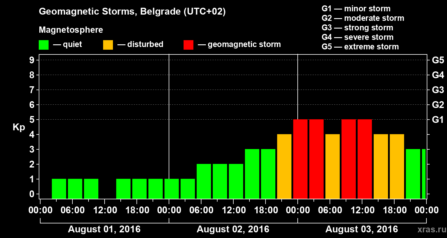 Geomagnetic storms in Belgrade on Aug 03, 2016