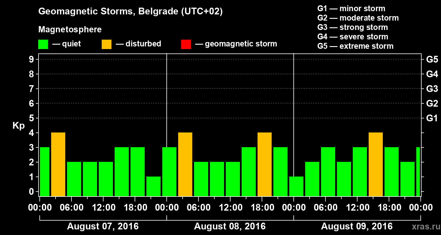 Geomagnetic storms in Belgrade on Aug 09, 2016