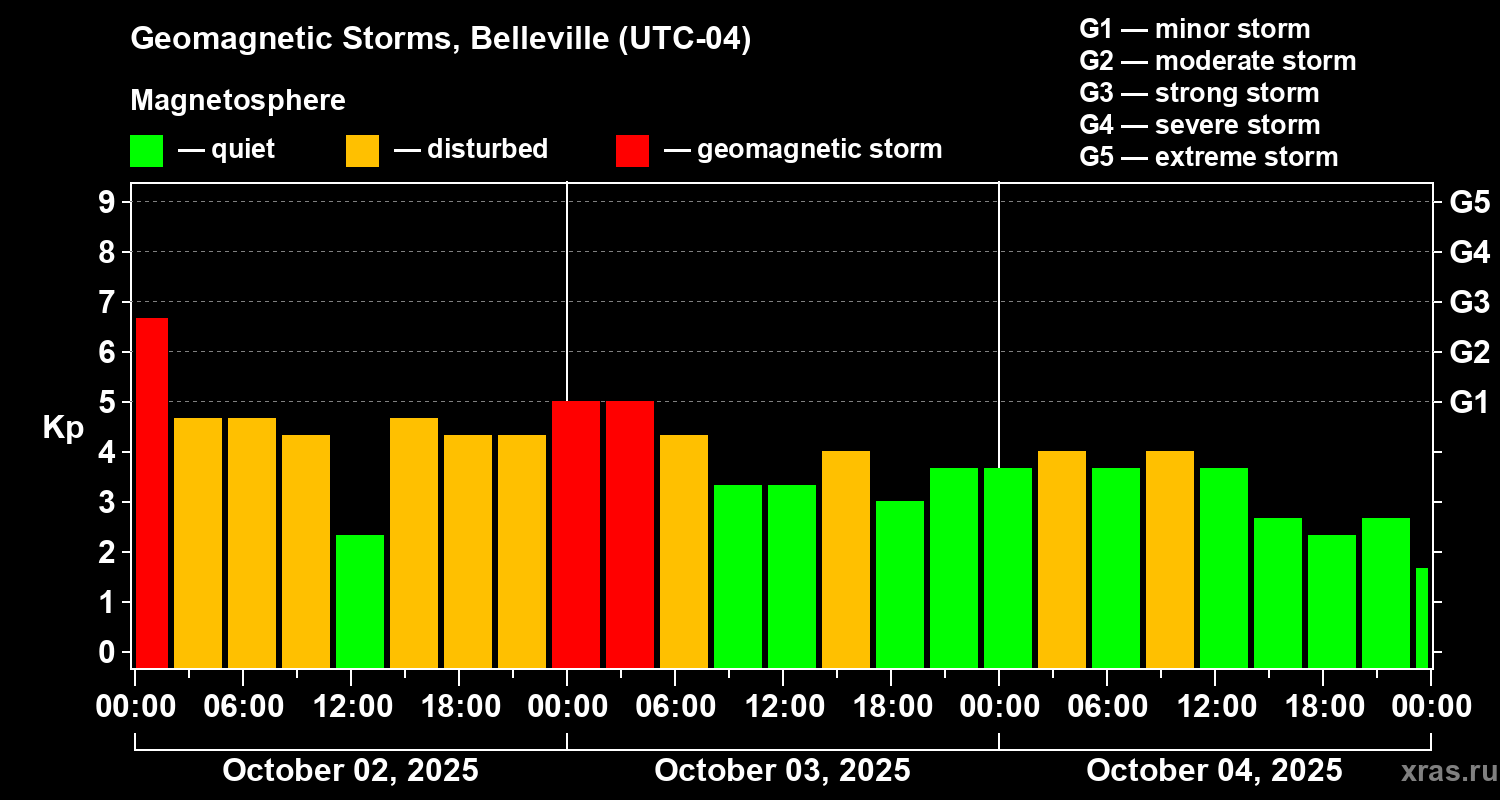 Geomagnetic storms in Belleville — Oct 04, 2025