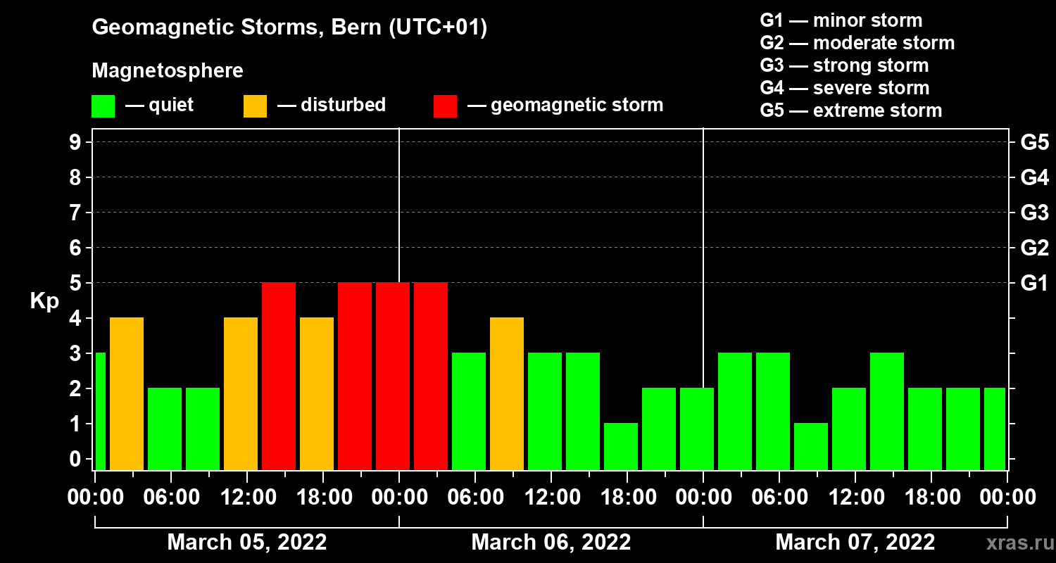 Geomagnetic storms in Bern on Mar 07, 2022