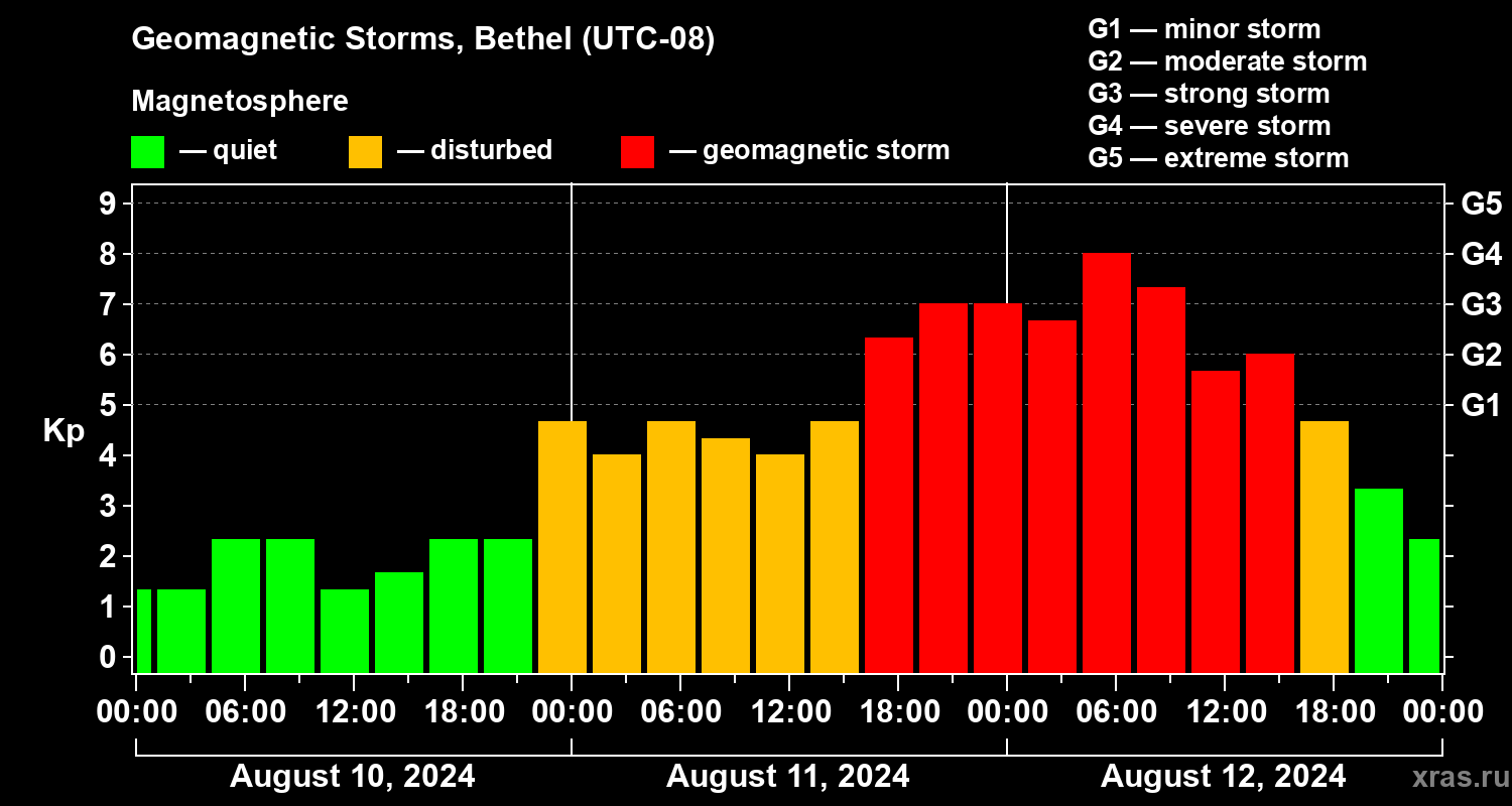 Geomagnetic storms in Bethel on Aug 12, 2024