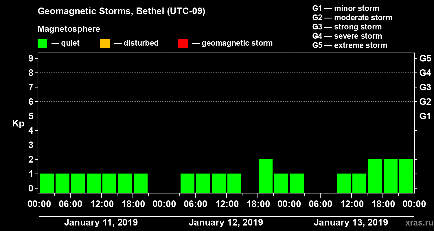Geomagnetic storms in Bethel — Jan 13, 2019