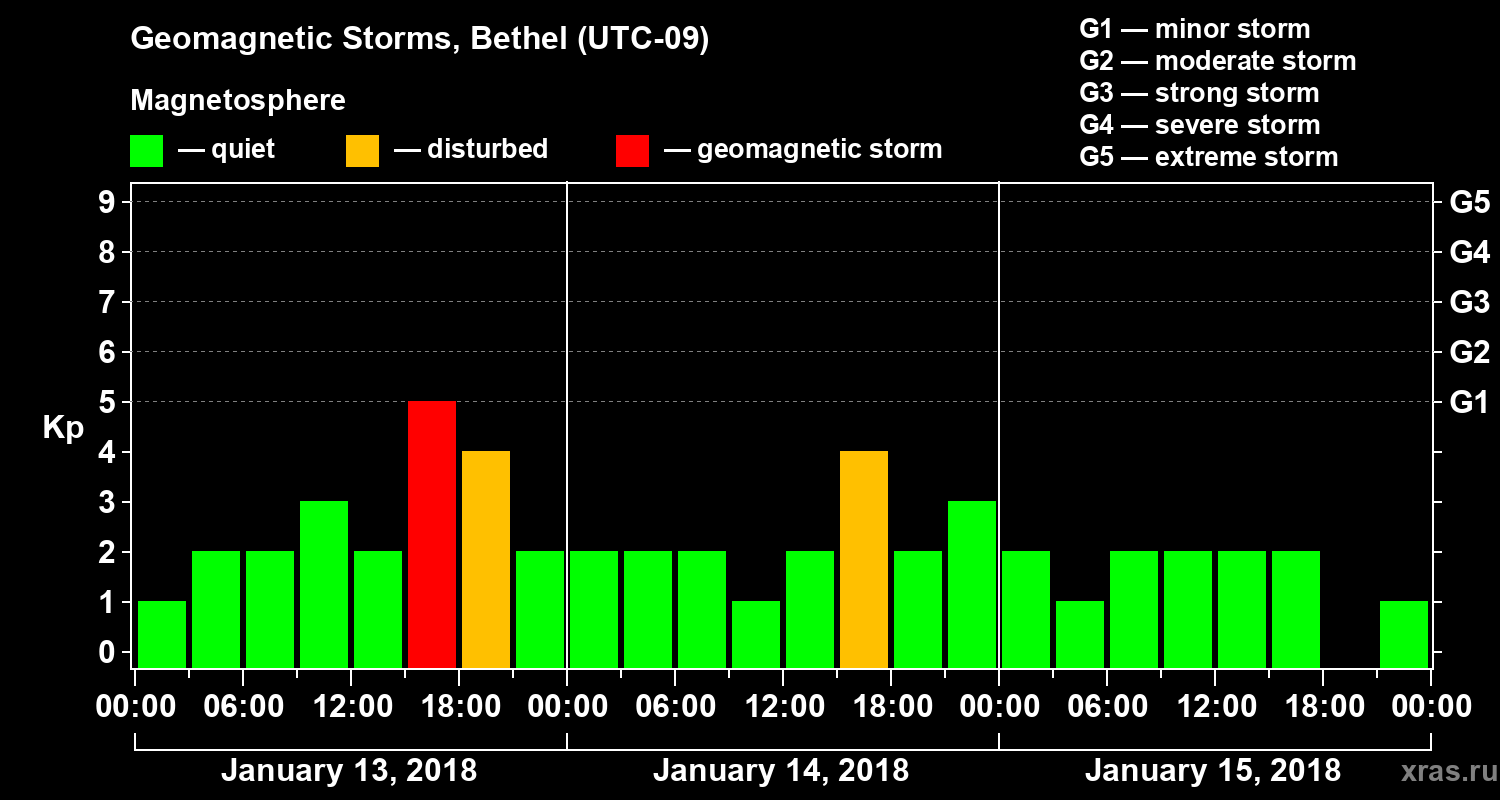Geomagnetic storms in Bethel — Jan 15, 2018