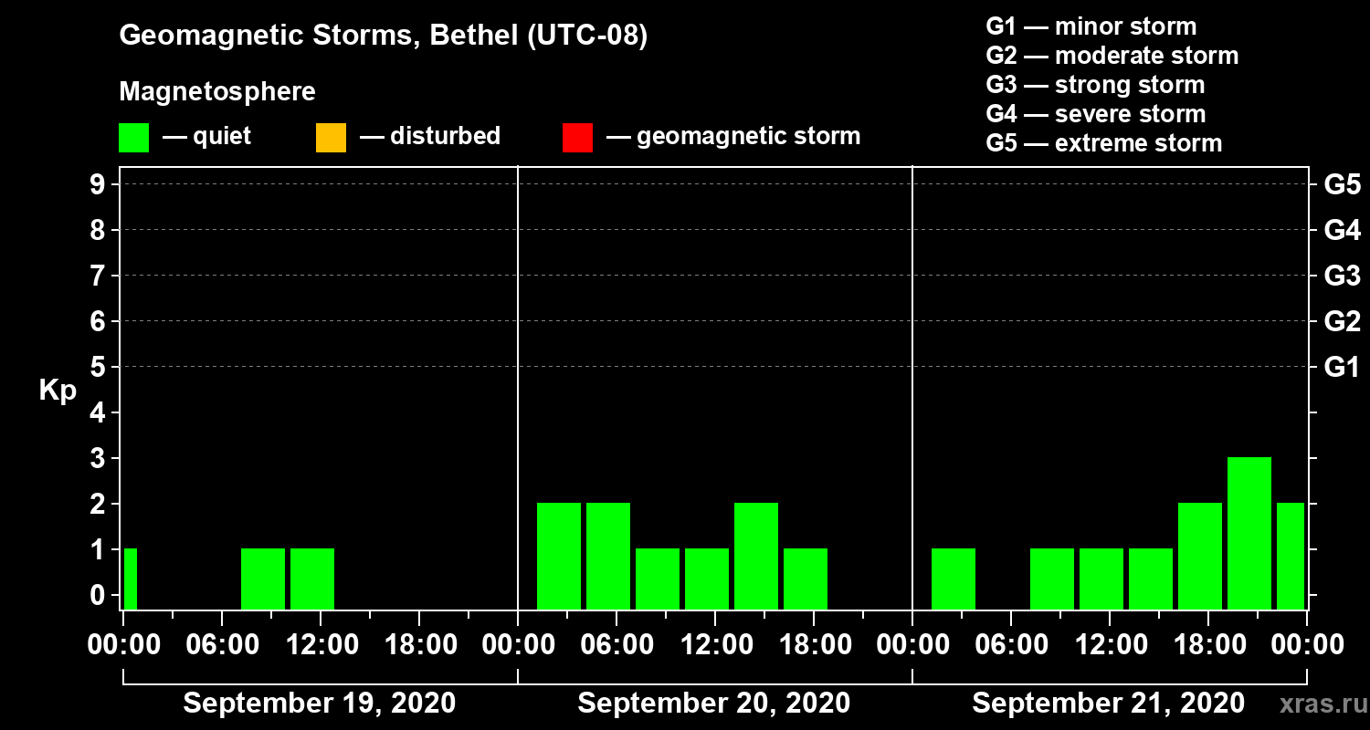 Geomagnetic storms in Bethel — Sep 21, 2020
