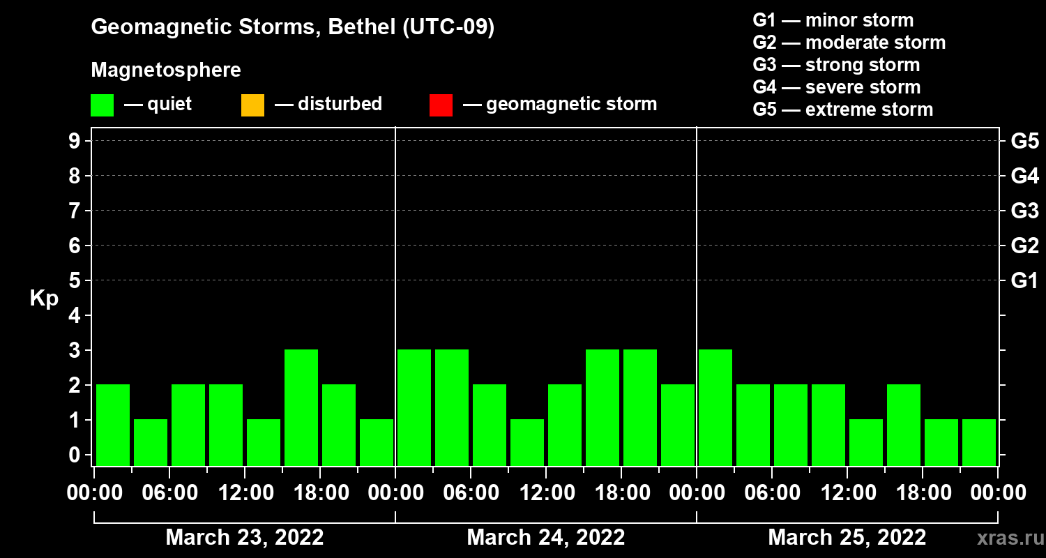Geomagnetic storms in Bethel — Mar 25, 2022