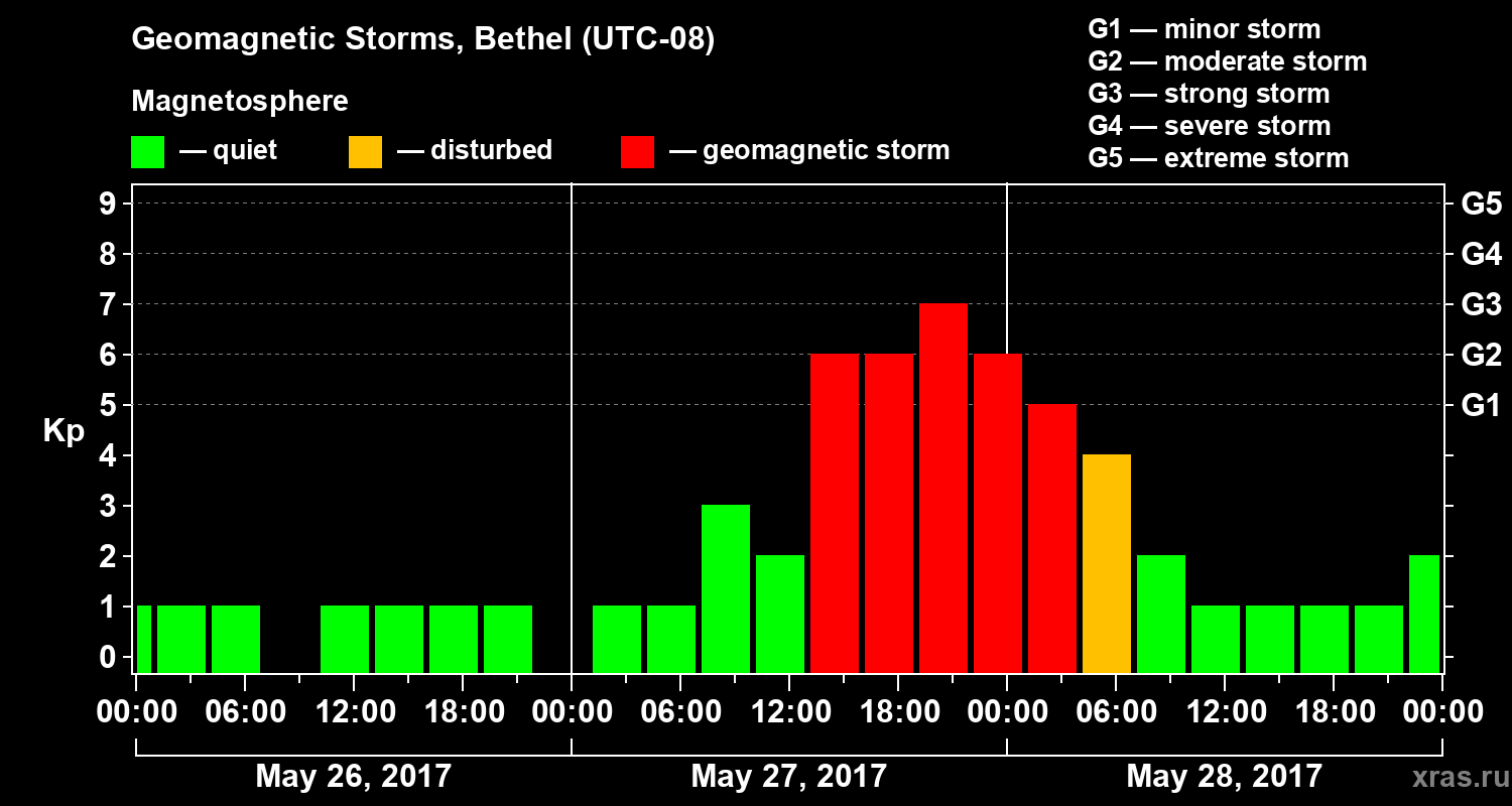 Geomagnetic storms in Bethel — May 28, 2017