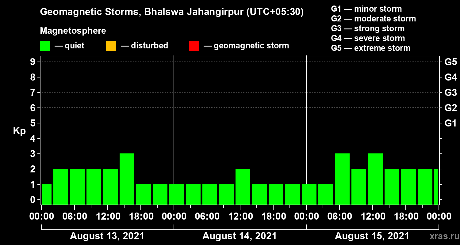 Geomagnetic storms in Bhalswa Jahangirpur — Aug 15, 2021
