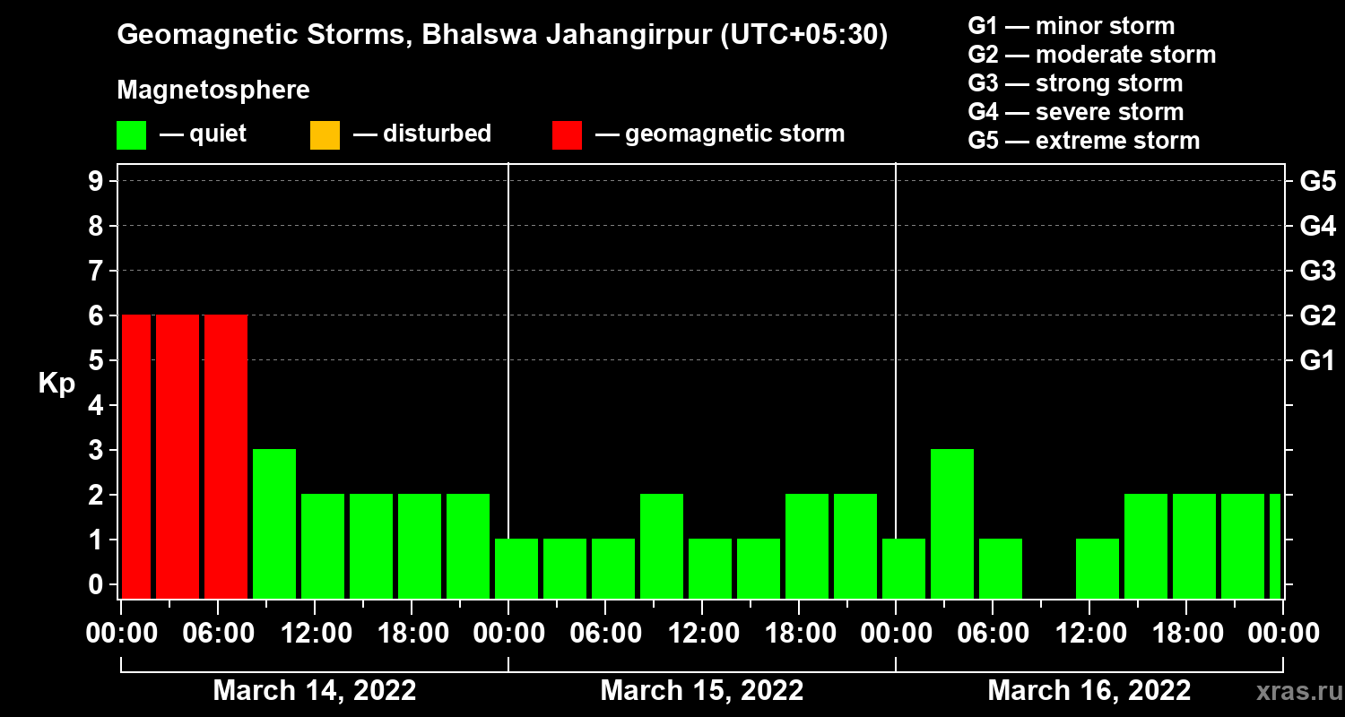 Geomagnetic storms in Bhalswa Jahangirpur — Mar 16, 2022