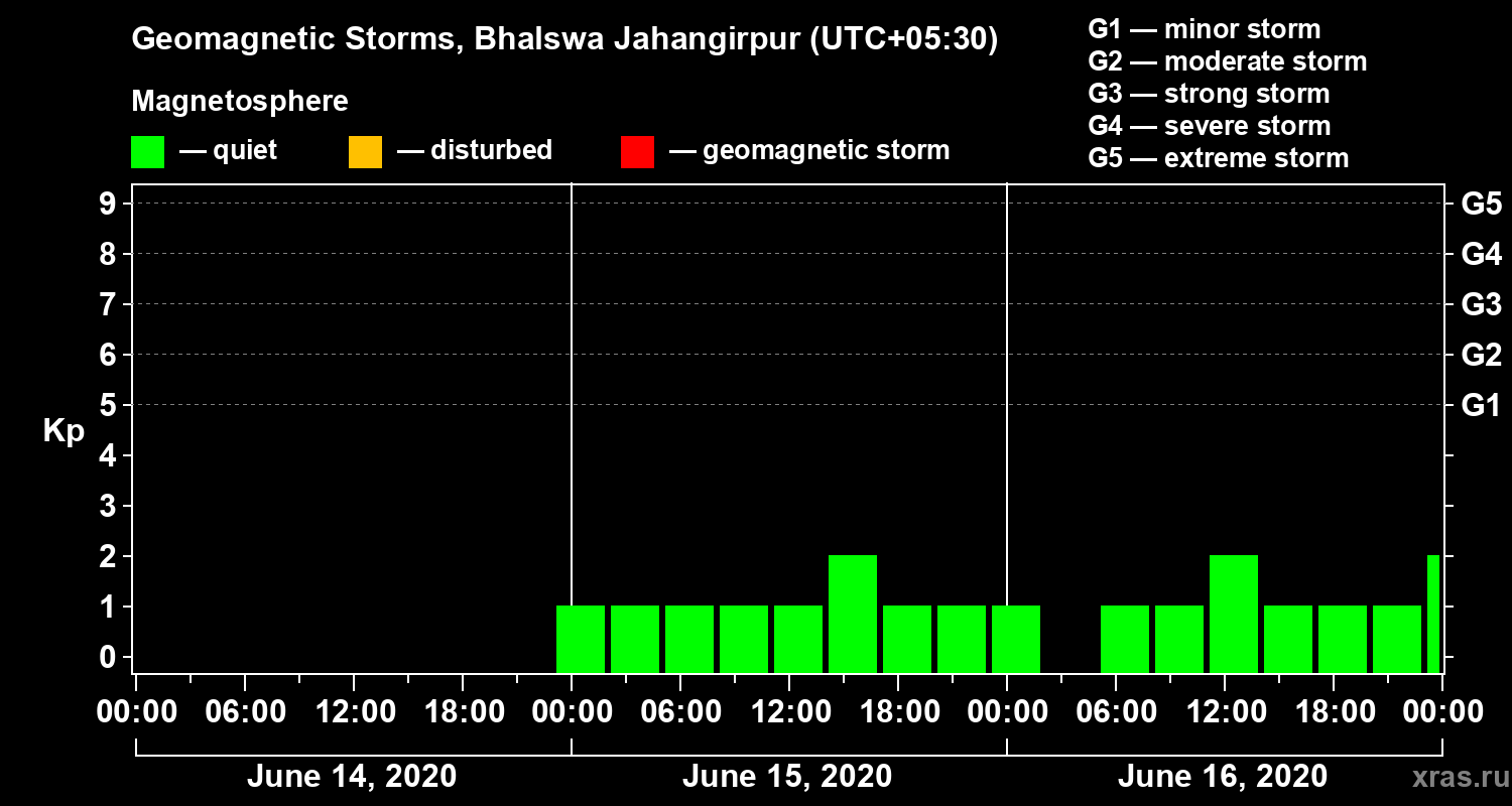 Geomagnetic storms in Bhalswa Jahangirpur — Jun 16, 2020