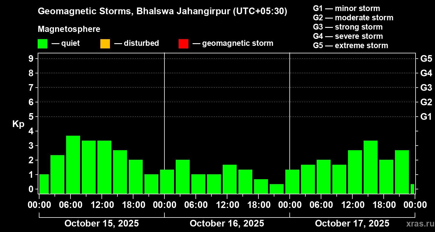 Geomagnetic storms in Bhalswa Jahangirpur — Oct 17, 2025