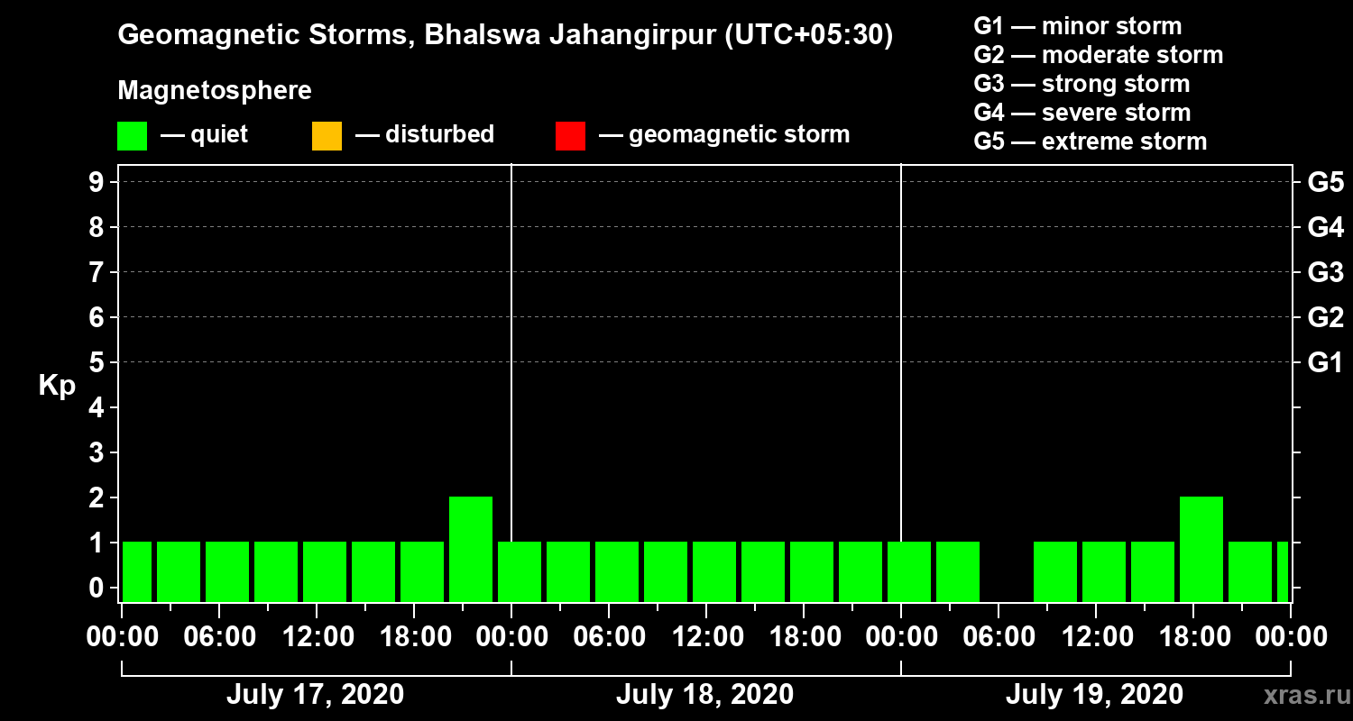 Geomagnetic storms in Bhalswa Jahangirpur — Jul 19, 2020
