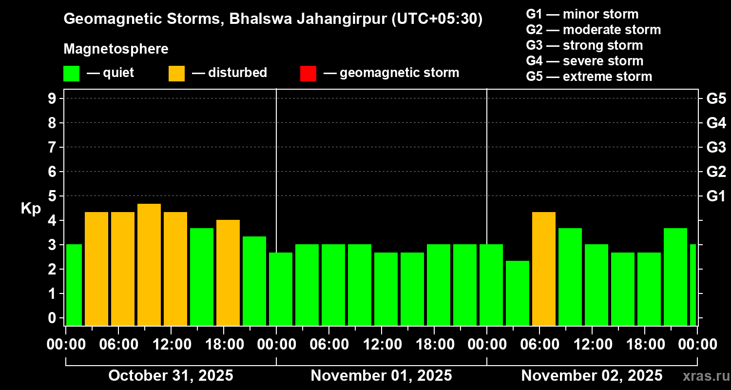 Geomagnetic storms in Bhalswa Jahangirpur — Nov 02, 2025