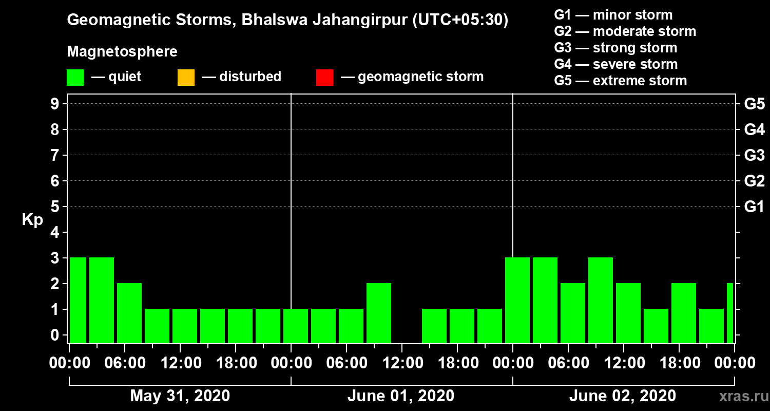 Geomagnetic storms in Bhalswa Jahangirpur — Jun 02, 2020