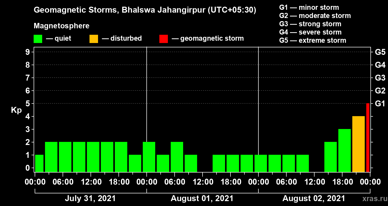 Geomagnetic storms in Bhalswa Jahangirpur — Aug 02, 2021