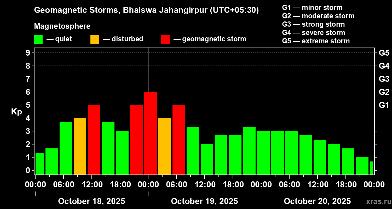 Geomagnetic storms in Bhalswa Jahangirpur — Oct 20, 2025