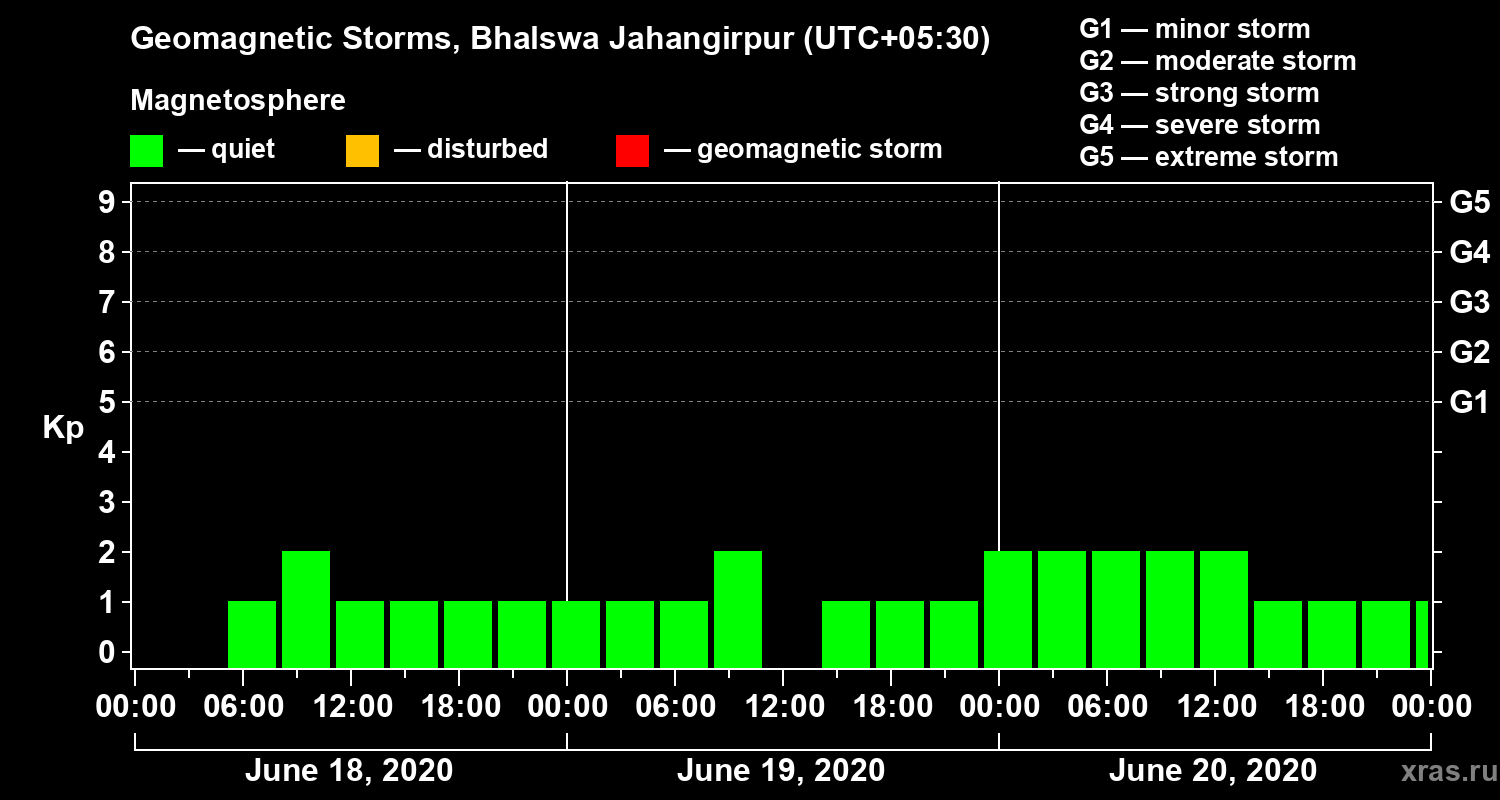 Geomagnetic storms in Bhalswa Jahangirpur — Jun 20, 2020
