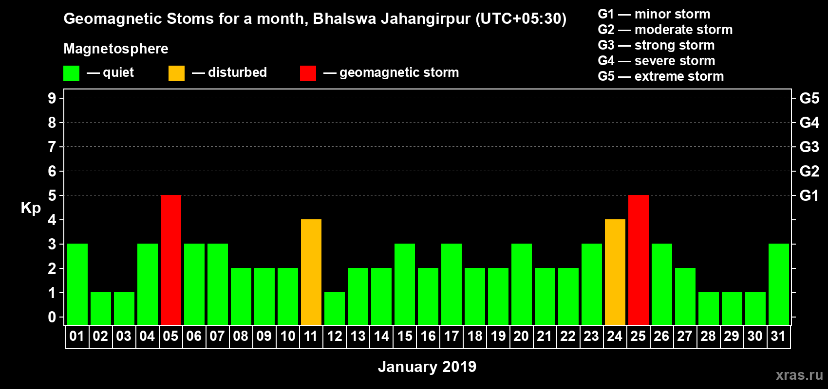 Geomagnetic storms in Bhalswa Jahangirpur — Jan 21, 2019