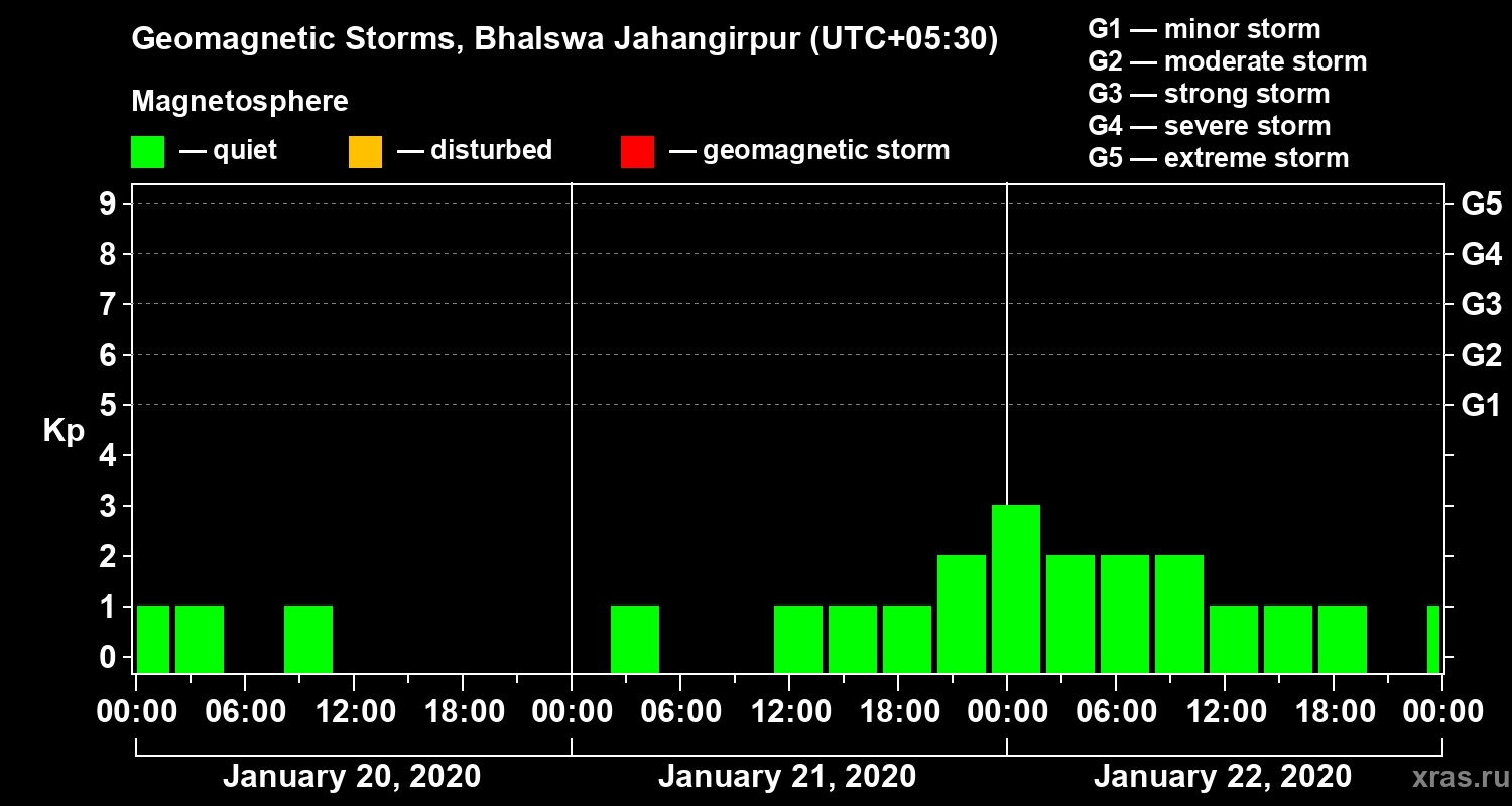 Geomagnetic storms in Bhalswa Jahangirpur — Jan 22, 2020
